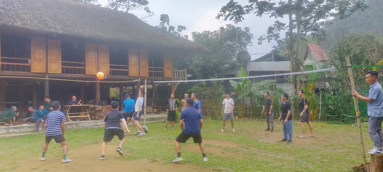 ( Cảnh giao lưu bóng chuyền hơi tại sân hộ Lèng Đức Quân)