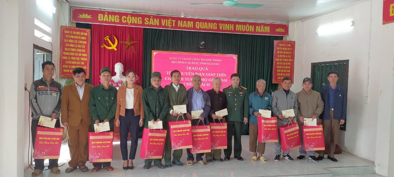 Đồng chí Thượng tá Hoàng Văn Giáp Chủ nhiệm phòng Chính trị; Bộ chỉ chỉ huy Quân sự tỉnh Hà Giang cũng chúc các hộ gia đình đón tết cổ truyền vui vẻ, đầm ấm, an toàn tiết kiệm. Những phần quà đã thể hiện sự quan tâm, chăm lo của Đảng, Nhà nước; Quân ủy Trung ương – Bộ Quốc Phòng đối với các hộ gia chính sách của xã nói riêng và của Bộ chỉ huy Quân sự tỉnh Hà Giang nói chung mỗi dịp Tết đến Xuân về.