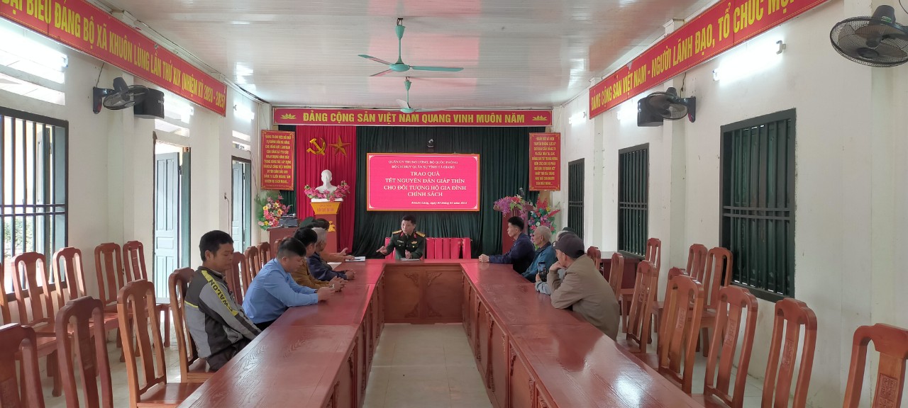 Đồng chí Thượng tá Hoàng Văn Giáp Chủ nhiệm phòng Chính trị; Bộ chỉ chỉ huy Quân sự tỉnh Hà Giang tặng quà Tết gia đình chính sách xã Khuôn Lùng. Tại buổi tặng quà, đồng chí Thượng tá Hoàng Văn Giáp Chủ nhiệm phòng Chính trị; Bộ chỉ chỉ huy Quân sự tỉnh Hà Giang đã thăm hỏi tình hình sức khoẻ và động viên các gia đình chính sách tiếp tục nêu cao tinh thần đoàn kết các dân tộc, thực hiện hiện tốt các Chủ trương, đường lối của Đảng, chính sách pháp luật của Nhà nước, khắc phục mọi khó khăn để thi đua lao động sản xuất, xây dựng góp phần xây dựng quê hương ngày càng giàu mạnh.